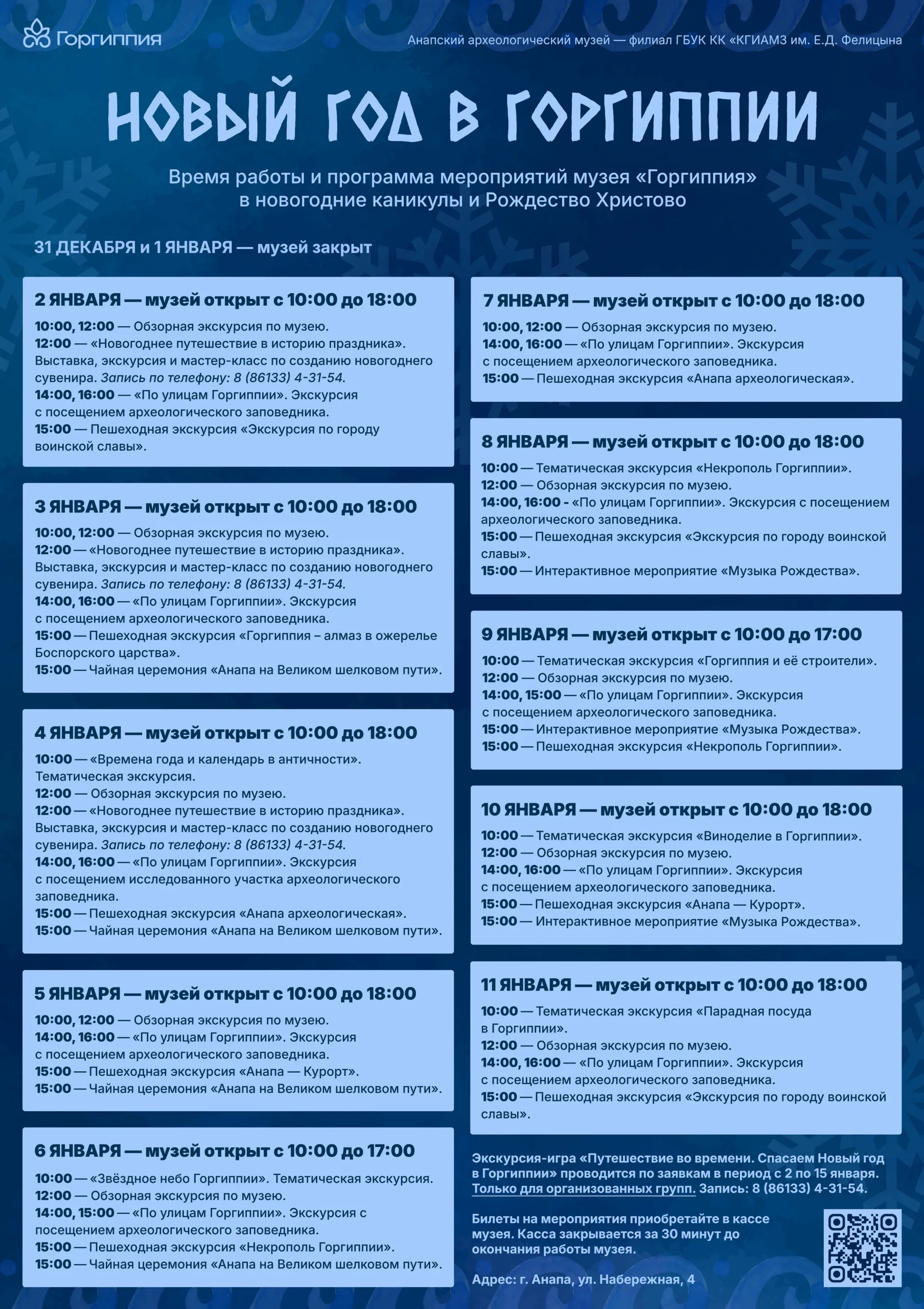 Время работы и программа мероприятий музея «Горгиппия» в новогодние каникулы и Рождество Христово
