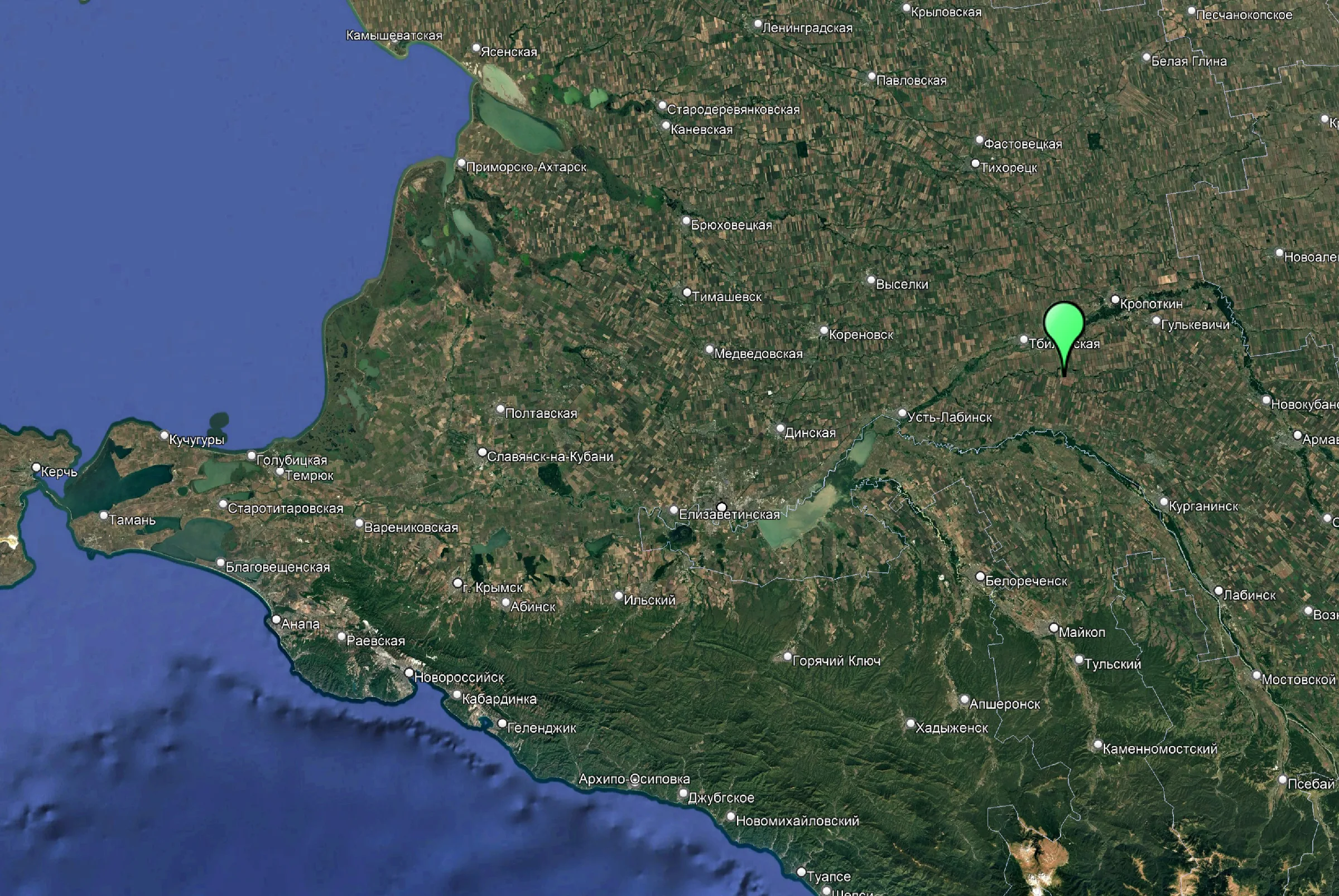 Расположение хутора Песчаный на территории Краснодарского края.