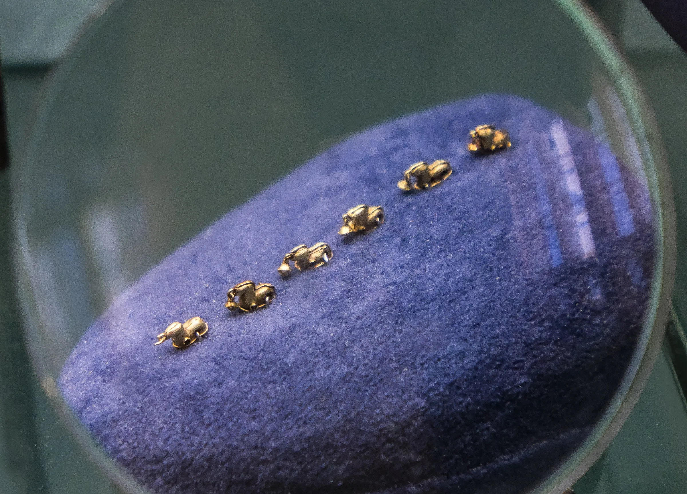 Фигурки лошадок с бубенчиками нашивные. Вт. половина I в. до н.э. х. Песчаный. Курган. Погребение 10. 1979 г. L = 0,6 см. Золото. Выставка «Золото потомков Геракла», ГИМ, 2015 г. Фото: https://vladimirdar.livejournal.com/60926.html
