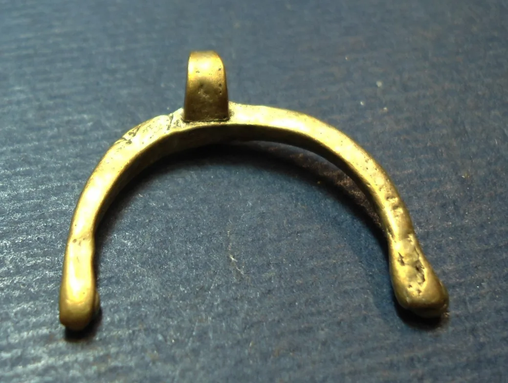 Золотая подвеска-амулет (расстояние между концами подвески 1.9 см, высота 1.7 см), изготовленная из квадратной в сечении проволоки.