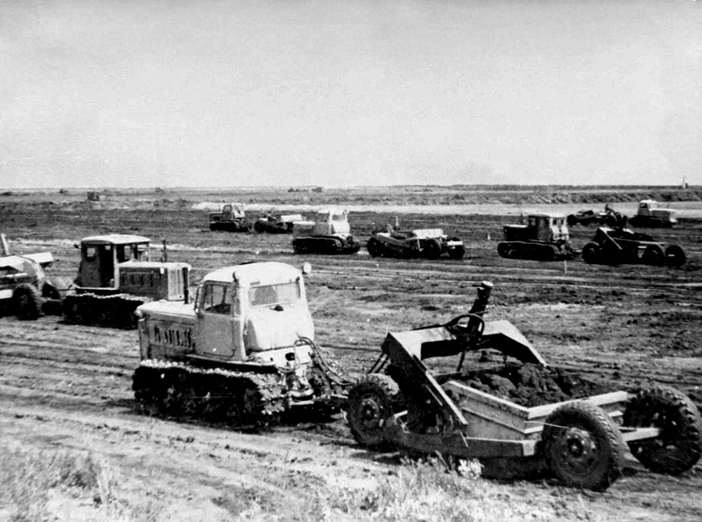 Работа скреперов при разработке рисовых чеков. 1976 год. Краснодарский государственный историко-археологический музей-заповедник имени Е.Д. Фелицына.